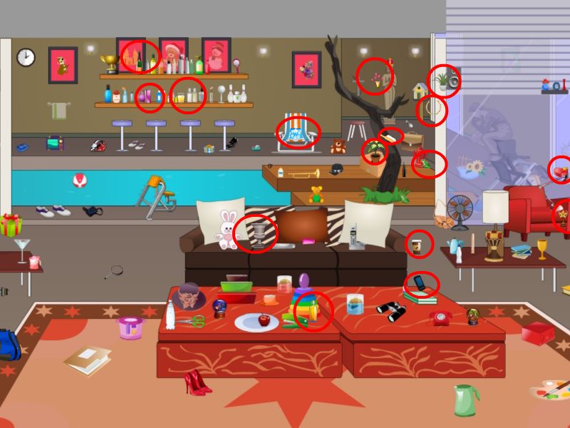Happy Living Room is another type of new hidden object game developed by hiddnogames.com. Do you love to find hidden objects? Again you have chance to showing your object finding talent. As you know here your task is finding all the hidden objects in this Happy Living Room pictures. But be careful because for your each 5 wrong click you will lose your 10 second from important game time. It�s not that easy, but fun good luck. |