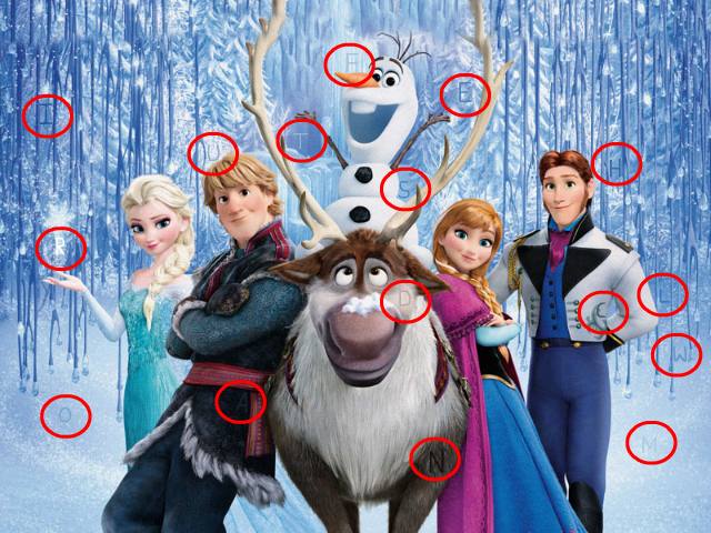 Hi hiddenogames fans. Do you love to find the hidden letters? Here is a challenge for your hunting talent. Find all those letters which are hidden in this Frozen movie pictures and make the highest score before time run out. Each wrong click will reduce your time.