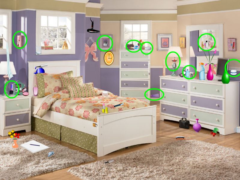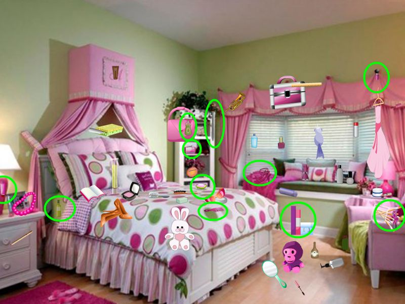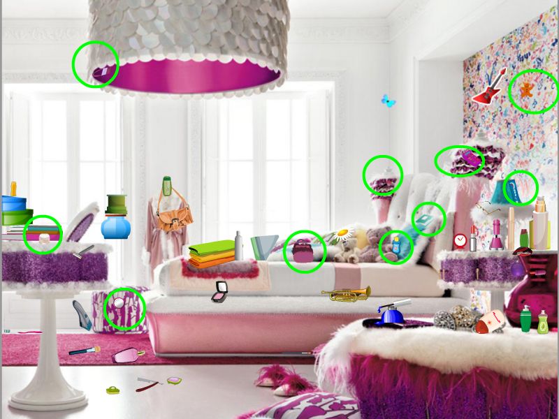 Use mouse to play Hidden Objects-Girls Room game. |